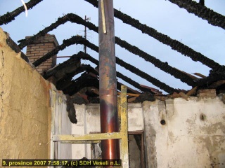 V průběhu noci bylo ještě nutné dohasit některá ohniska, která se objevila zejména ve vrstvách izolačního materiálu střechy a také jsme museli z jedné podkrovní místnosti vyházet před dům vrstvu materiálu, která se skládala z opadané omítky a doutnajících a žhnoucích zbytků skříní s prádlem a izolačního materiálu ze střechy. Tento materiál byl na prostranství před domem dohašován pomocí jednoho vysokotlakého proudu.