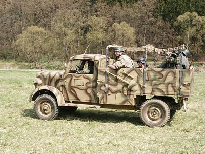 Německá a americká dobová technika (motocykly, osobní a nákladní automobily, 1 x obrněné vozidlo sdkf 251)