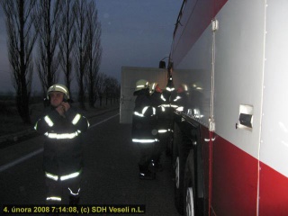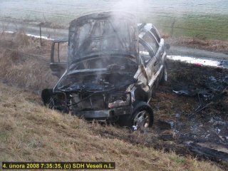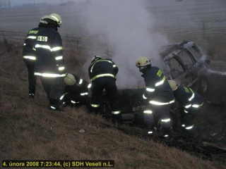Při dopravní nehodě s následným požárem zasahovaly v pondělí 4.2.2008 ráno jednotky HZS Soběslav a SDH Veselí nad Lužnicí.