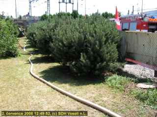Při příjezdu na místo události zde již zasahovala jednotka HZS Soběslav s CAS–24 Liaz. Hořela tráva na náspu železniční trati Č.Budějovice – Praha za autobazarem Dvořák na ploše cca 30 x 5 metru. Na rozkaz velitele zásahu natáhla naše jednotka jedno vedení „B“ a jedno vedení „C“ a zahájila hasební práce. Na místo se dostavila též jednotka SDH Přehořov s CAS–25 Škoda 706, která byla následně odvolána a jednotka HZS Českých drah s CAS–32 Tatra 815. Po likvidaci se naše jednotka na rozkaz VZ vrátila na základnu.