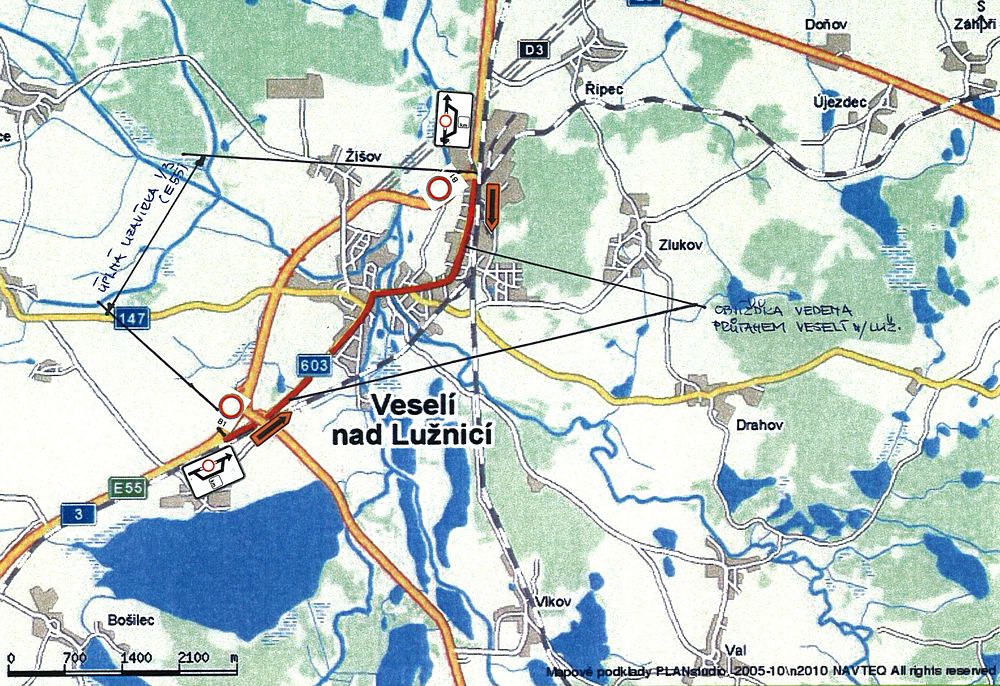 Uzavření obchvatu přesměruje veškerou dopravu přes město Veselí nad Lužnicí.30. července 2010, Obec , přečteno 5457x, komentováno 3x Serveru Veselsko.cz se podařilo z Ředitelství silnic a dálnic získat vyjádření k plánované uzavírce obchvatu města v následujícím znění: Z důvodu značných poruch na obchvatu Veselí nad Lužnicí a faktu, že po tomto úseku bude ze stavby dálnice D3 vyváženo veliké množství veškerých materiálů potřebných k její výstavbě, bylo dohodnuto, že před započetím těchto prací dojde k výspravě těchto poruch, aby nebyla ohrožena bezpečnost silničního provozu. Opravy budou probíhat za úplné uzavírky a objízdná trasa bude vedena přes průtah města Veselí nad Lužnicí. Začátek je ve směru od Prahy za vlečkou do bývalého areálu Fruty po silnici II/603 vedoucí průtahem Veselí n.L. a končí vyústěním této silnice na I/3 (E55) u Horusic. (viz.přiložená mapka). Tato uzavírka byla projednána s městem Veselí n.L. a jejich požadavkem bylo, že tato uzavírka bude trvat 5 max.6 dní z toho dva dny budou sobota a neděle. Termín oprav je zatím v jednání.