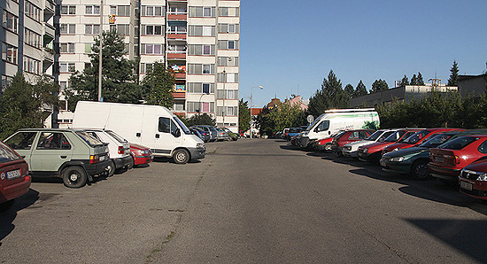 Propojení Budějovické ulice s marketem TESCO osvětleným chodníkem